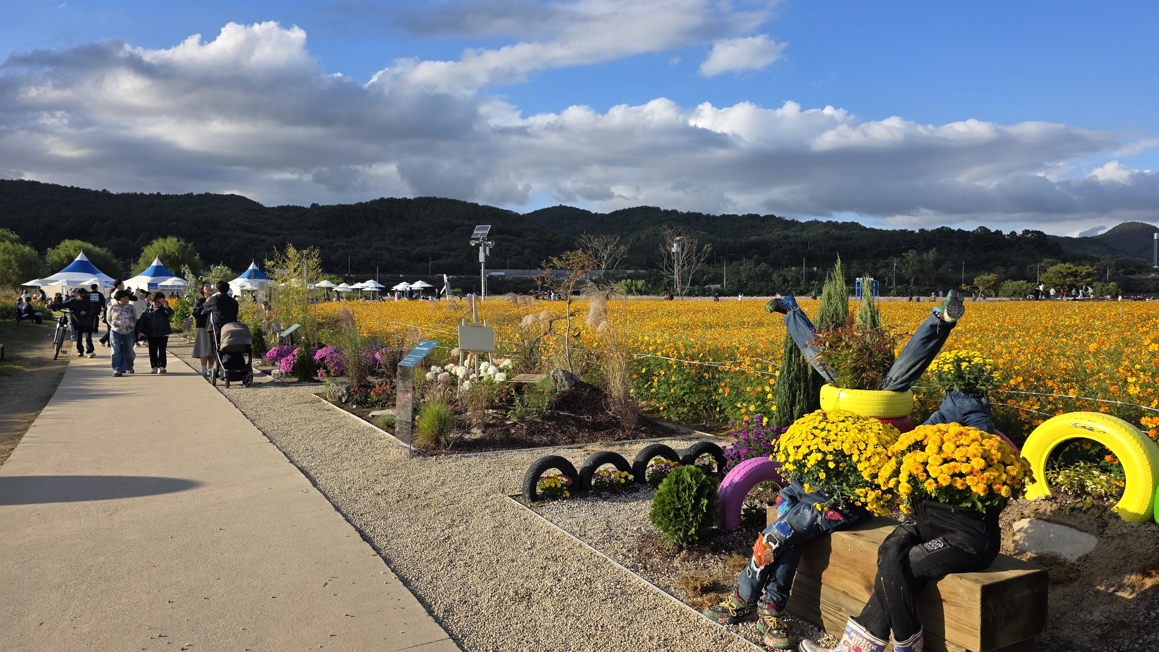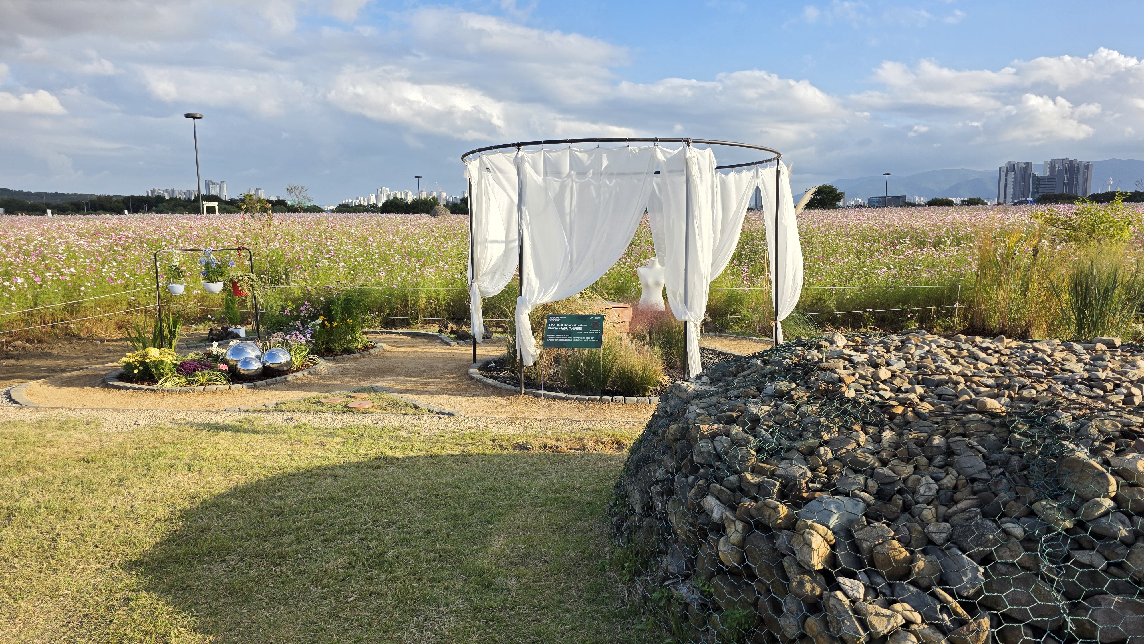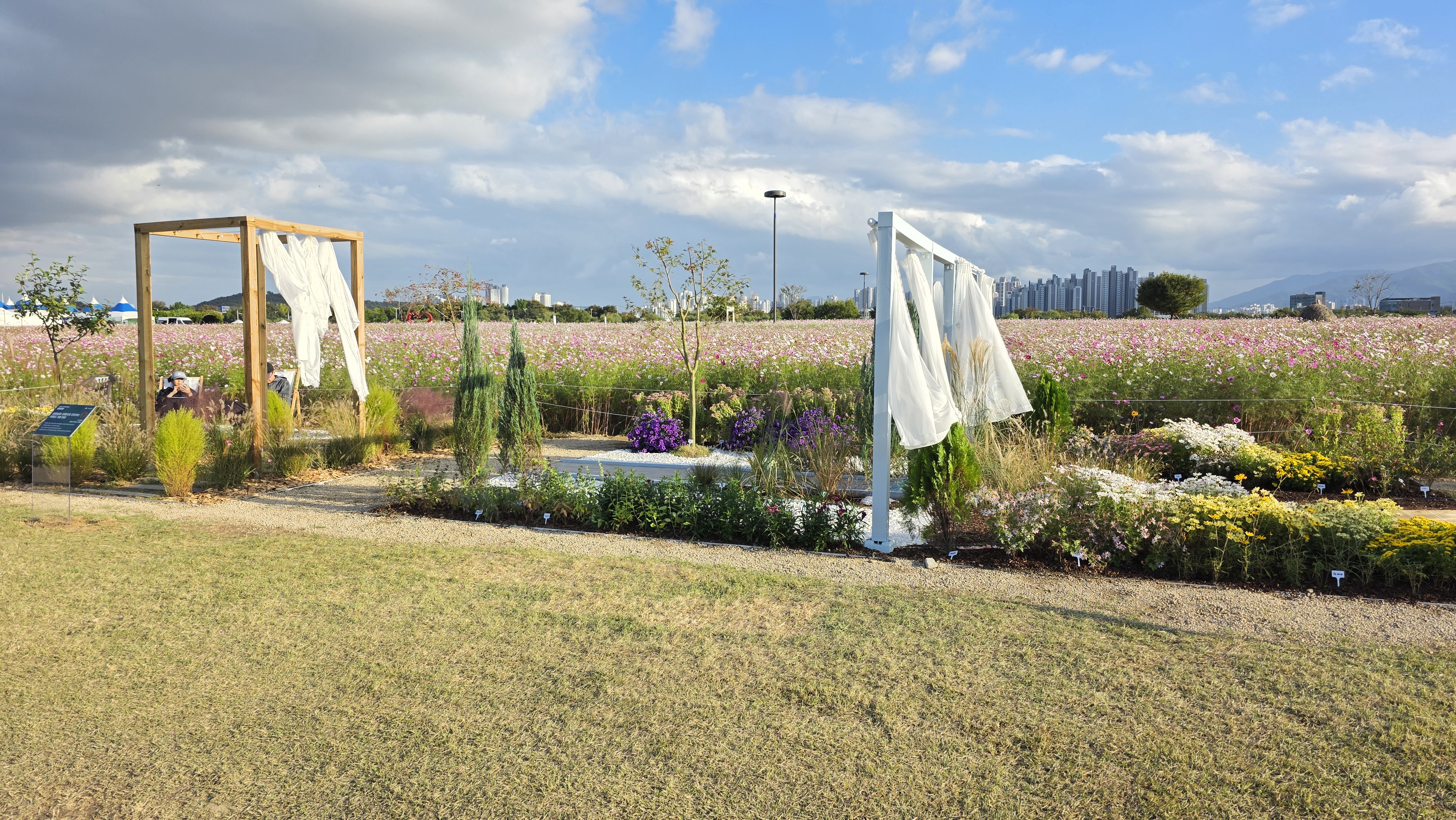 박람회는 관람객의 적극적인 참여를 강조합니다. 하중도의 넓은 공간에 조성된 다양한 정원이 가을 햇살 아래 펼쳐지며, 코스모스, 댑싸리, 물억새 등 자연 식물과 어우러져 로맨틱한 분위기를 자아냅니다.