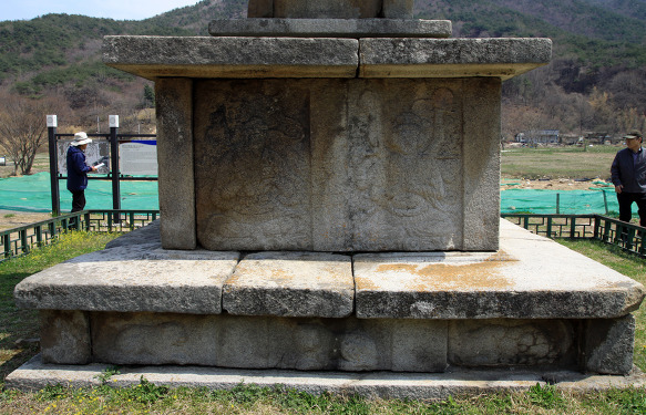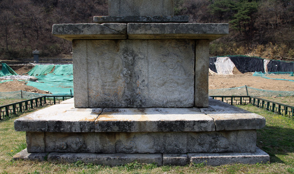 ㅇ 기단부는 상·하 2층의 가구식 기단을 구성하였고, 부조(浮彫) 조각기법으로 하층기단 면석에는 각기 방향과 형상이 다른 사자상(獅子像)을 사실적으로 표현하였고, 상층기단 면석에는 팔부중상(八部衆像)을 유려(流麗)하게 조각하여 통일신라시대 조각양식과 수법을 계승함과 동시에 고려시대 석조각의 우수성을 잘 표현하고 있다.