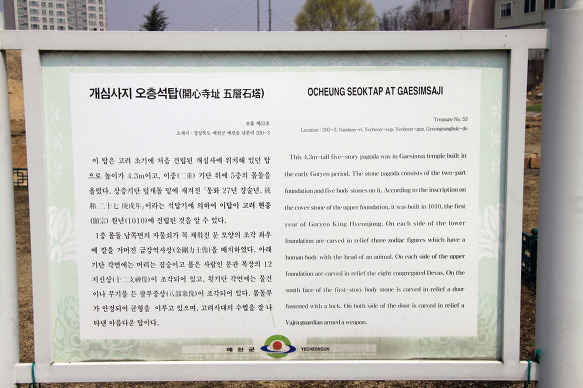 예천 개심사지 오층석탑 (醴泉 開心寺址 五層石塔.보물 제53호. 경북 예천군 예천읍 남본리 200-3)