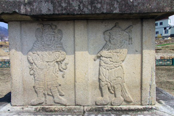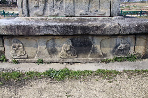 아래층 기단은 4면마다 안상문을 새기고 그 안에 머리는 짐승, 몸은 사람인 12지신상(十二支神像)을 차례로 조각하였다.