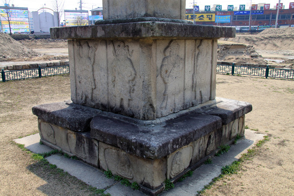 ㅇ 기단부는 상·하 2층의 가구식 기단을 구성하였다. 하층 기단에는 각 면마다 3개의 안상(眼象)을 배치하고 안상 내에 십이지신상(十二支神像)을 조각하였고, 상층 기단 면석에는 각 면마다 2구씩 팔부중상(八部衆像)을 조각하였는데 1층 탑신의 금강역사상(金剛力士像)의 배치와 함께 이러한 도상의 전개는 다른 석탑에서는 유사성을 찾기 어려운 독창성이 돋보이고 복식이나 지물 또한 특이하며 예술적 완성도가 높다.