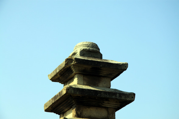 ㅇ 옥개석은 하부에 4단의 옥개받침을 낮게 조각하였고, 좌우 너비에 비하여 상하 높이가 낮아 통일신라시대 석탑과는 다른 치석수법과 외관을 형성하고 있다. 상륜부는 정상에 노반석(露盤石)이 놓였고 그 위에 긴 찰주(刹柱)가 꽂혀 있을 뿐 다른 부재는 남아 있지 않다.