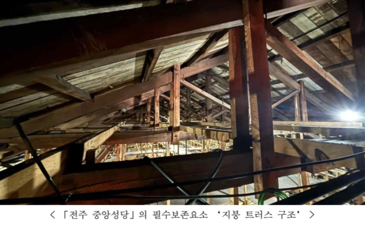 「전주 중앙성당」은 내부에 기둥을 두지 않고 지붕 상부에 독특한 목조 트러스를 활용하여 넓은 예배공간을 확보하였는데, 이는 당시의 기술 수준을 확인할 수 있는 구조적 특징으로 앞서 등록된 다른 성당건축과의 차별성을 보여주고 있다.