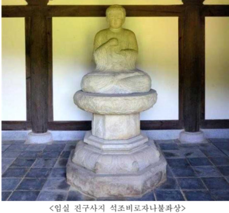 「임실 진구사지 석조비로자나불좌상」은 정확한 제작 시기를 알려주는 자료는 존재하지 않지만, 불상과 대좌(臺座)의 형식, 조형미, 진구사지에 있는 석등과의 비교 등을 통해 통일신라 하대인 9세기 후반에 제작된 것으로 추정된다.