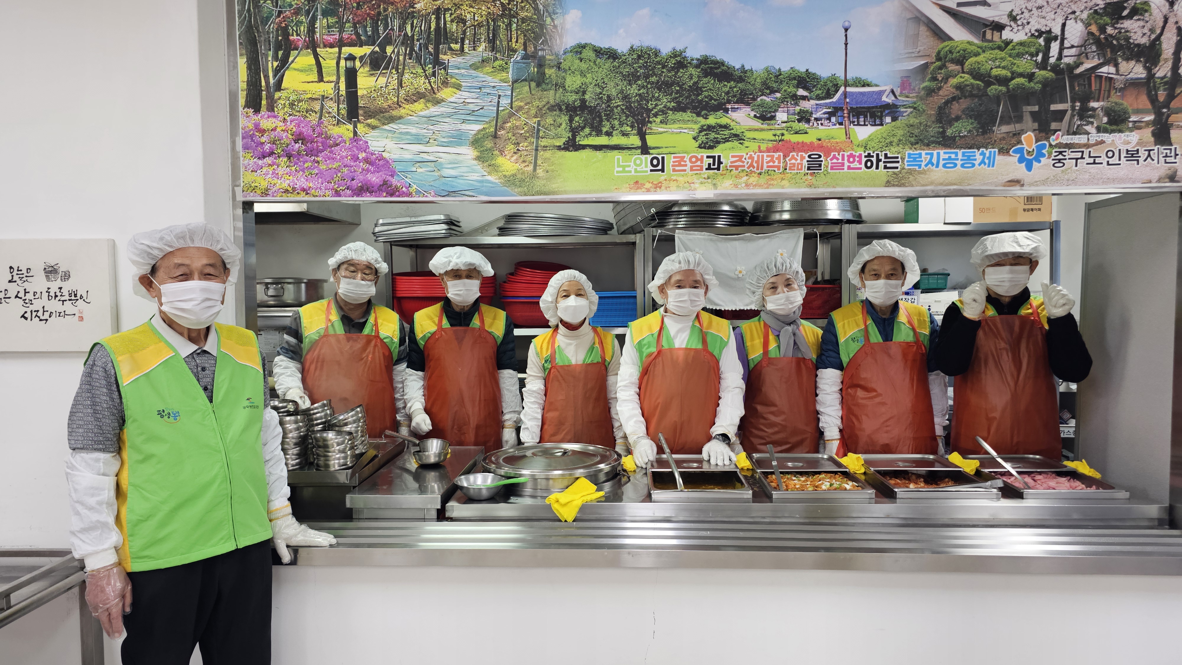 꽃샘추위가 물러가고 완연한 봄기운이 완연한 3월 25일, 대구 중구의 마음 온도는 그 어느 곳보다 뜨거웠다. 공무원연금공단 소속 대경상록자원봉사단(임영태단장.류종렬회원. 이남회원.김성길회원.오문호회원.김영섭회원.이해수회원.이태희회원.김기숙회원.권전탁단장.김임선단장.김재승단장) 단원 12명은 이날 오전 10시부터 오후 2시까지 대구중구노인복지센터를 찾아 어르신들을 위한 급식 봉사 활동을 펼쳤다.